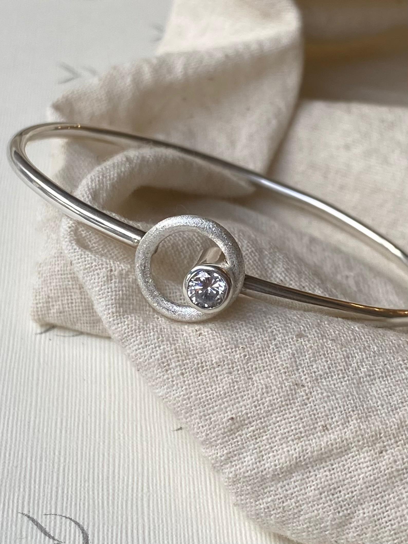 Brazalete realizado en plata 925 con circonia de 5mm.