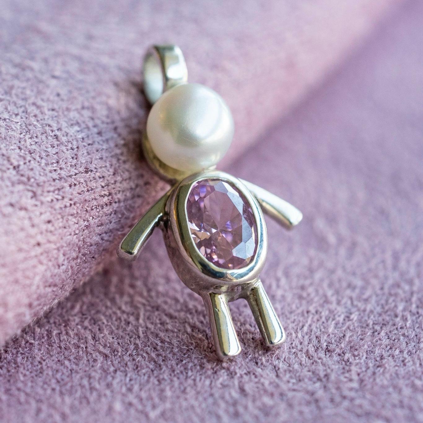 Niña realizada en plata 925, perla de río y circonia.