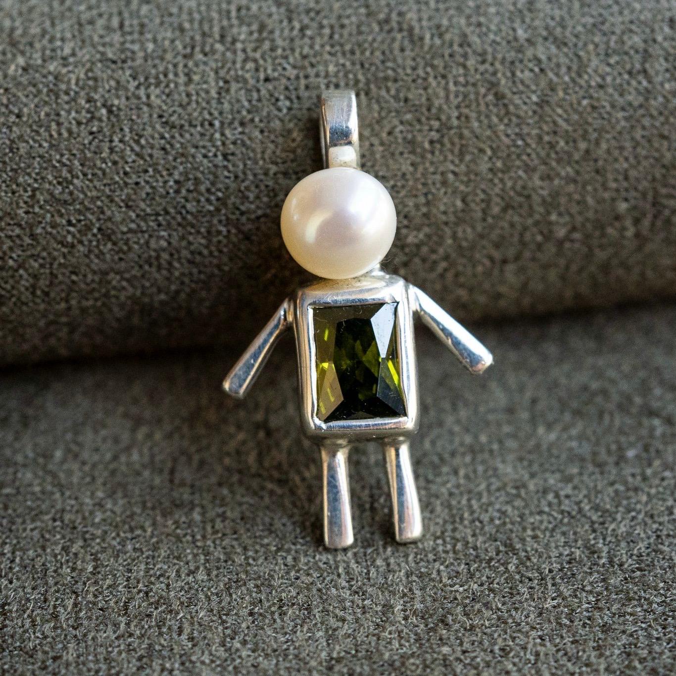 Niño realizado en plata 925, perla de río y circonia.